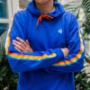 Oransje genser i bomull med brodert logo. Striper på utsiden av begge armene.